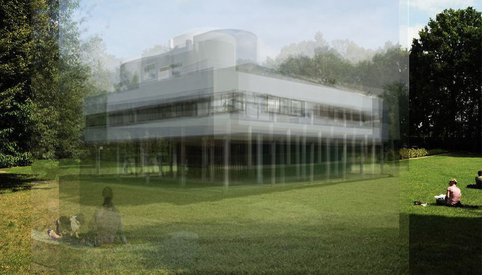 Les photos Instagram les plus populaires de la Villa Savoye sont rassemblées dans un collage de manière à produire une « image héroïque » de son architecture, toujours photographiée sous le même angle.