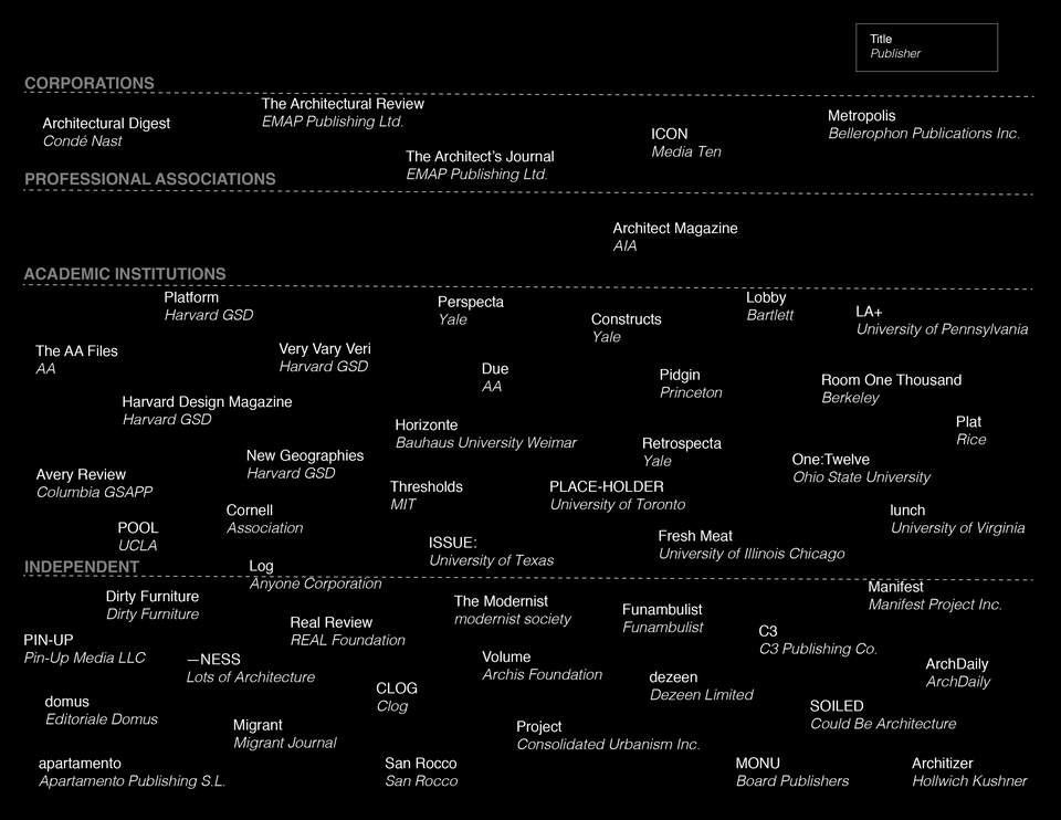 Le monde fourmille déjà de magazines sur l’architecture, dont la qualité est inégale. Si l’histoire leur a longtemps octroyé une niche particulière, l’espace qui leur est réservé aujourd’hui est toujours plus maigre et la prise de parole y est plutôt consensuelle. Même ceux qui ont délaissé le papier le font avec un plaisir masochiste. Mais le papier n’est ni le seul outil, ni sans doute le support le plus pertinent de nos jours; il y a de nombreuses façons de susciter un public intéressé par les réflexions sur l’architecture.