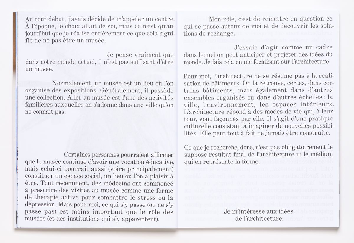 Cette publication est conçue comme le premier volume d’une série avec laquelle le CCA veut réfléchir (et partager ses réfléxions) aux questions qui sous-tendent son travail. Les thèmes abordés dans ce volume comprennent l’engagement de l’institution dans les enjeux du présent, l’importance des archives en tant que site de production de nouvelles idées, les stratégies de scénographie dans les expositions d’architecture, le besoin de médiation dans l’art et l’impact du numérique dans les pratiques muséales actuelles.
