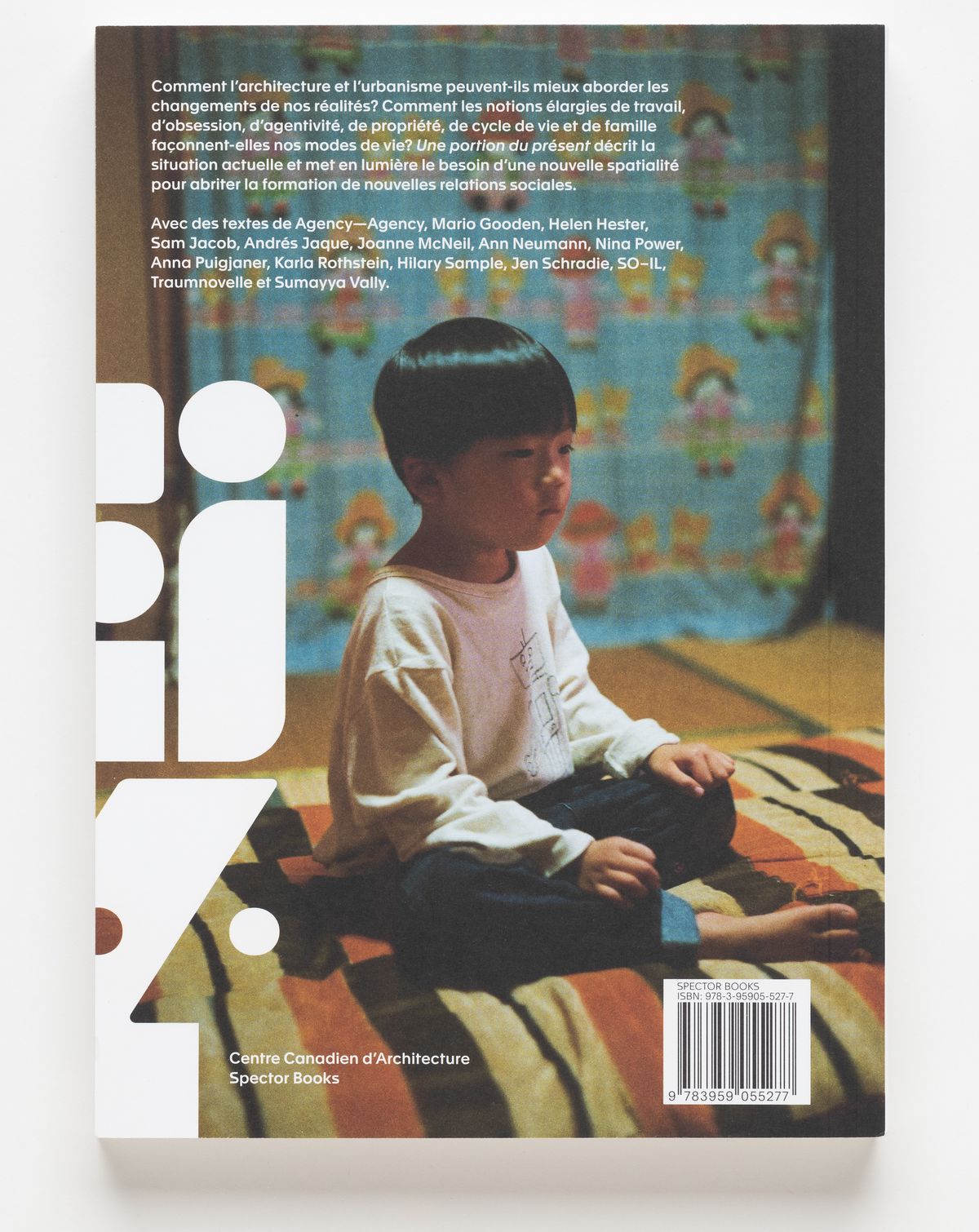 Conçu dans le cadre du projet annuel Ressaisir la vie, le livre Une portion du présent vise à rétablir un dialogue entre l’architecture et la société, lequel permettrait à la première de commencer à composer et à traiter avec nos normes sociales modifiées et fluctuantes. Cette publication est une réflexion sur de nouveaux comportements, rituels, valeurs et sur leurs implications spatiales. Elle cherche à catalyser des interventions urbaines et architecturales qui concilient, influencent et, dans certains cas, anticipent nos réalités vécues d’aujourd’hui. Les auteurs abordent des sujets qui vont de la sécurité des espaces numériques à la façon dont les trajectoires de vie normatives touchent les personnes âgées et les nombreuses expressions du soi mises de l’avant par chacun d’entre nous, ainsi que la manière dont les architectes créent des contextes pour des espaces destinés à des familles recomposées, des retraités de trente ans et des monuments contestés, entre autres. Rassemblant des essais analytiques portant sur le moment contemporain et la direction que prend actuellement la société, des textes projectifs qui présentent des types architecturaux inédits pour traiter des besoins sociétaux, de même que des séries télévisées, photographies et projets d’architecture et de design, Une portion du présent trace le contour d’une relation nouvelle entre les espaces dans lesquels nous vivons et les manières dont nous le faisons.