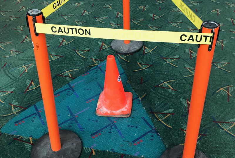 Avec l’essor du très grand bâtiment en tant qu’interprétation capitaliste du rêve de la mégastructure libératrice des années 1960, le tapis devient un protagoniste à part entière, à partir duquel il est possible de questionner les notions de contrôle, d’auteur et d’économie. Les hôtels, les casinos, les centres de congrès et les espaces de bureaux sont souvent ornés de tapis déroutants, bigarrés et déconcertants. Ces moquettes sont parfois conçues par des architectes, mais la plupart du temps, elles sont l’œuvre de designers corporatifs, de règles d’image de marque ou même issus des comportements des utilisateurs. Les spécialistes du secteur de l’hospitalité se sont efforcés de mettre sur pied une alchimie de la conception de tapis et de moquettes qui permettent d’intensifier les expériences et les habitudes servant les intérêts des propriétaires des lieux.