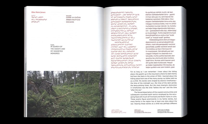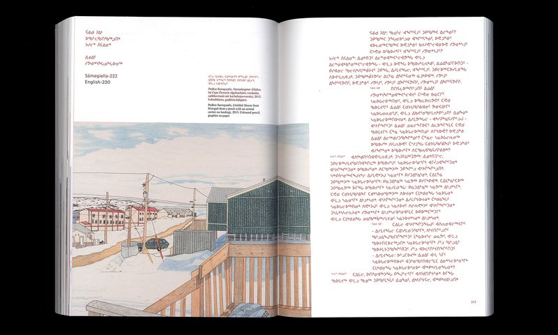 Dans le but de soutenir la croissance et la revitalisation des langues autochtones, le livre présente des textes en same du Nord et en inuktitut aux côtés de l’anglais et du français. Il est coédité par le CCA, Valiz et Mondo Books, et conçu en lien avec l’exposition ᐊᖏᕐᕋᒧᑦ / Ruovttu Guvlui / Vers chez soi, organisée et présentée au CCA du 11 juin 2022 au 26 mars 2023 et à la Faculté Daniels de l’Université de Toronto du 25 octobre 2023 au 22 mars 2024.