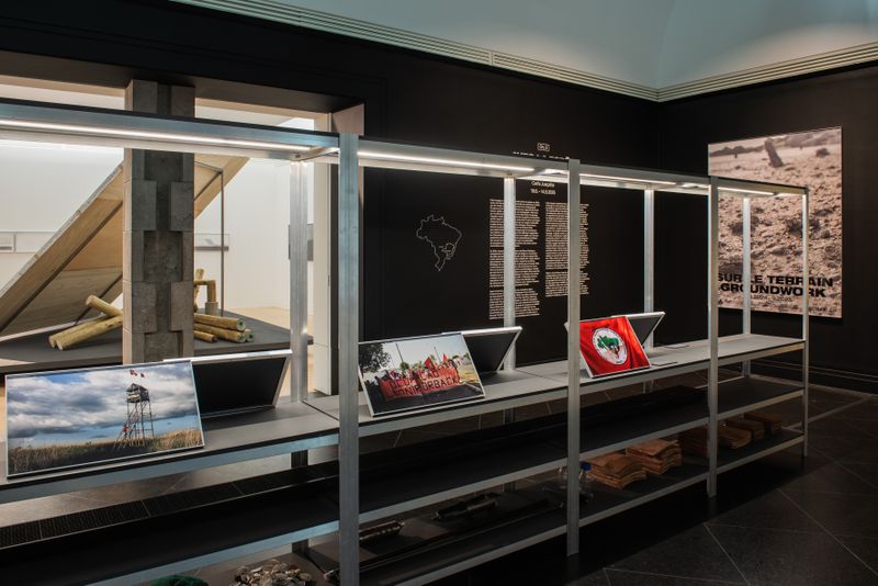 Avec la forêt suit l’architecte Carla Juaçaba dans son projet de développement d’un musée et espace communautaire en solidarité avec Flor de Café, un collectif de petits agriculteurs du Minas Gerais. Inspirée par la temporalité des structures collectives autochtones et la forme des panneaux autoroutiers qui ponctuent le vaste paysage rural de la région, Juaçaba propose un point de repère sur une plantation dans les hauteurs surplombant la ville de Nepomuceno. La construction, légère et stratégique, offrira un espace pour l’échange de connaissances, créant une scène symbolique de résistance tout en ne laissant qu’une emprise minimale sur terre. Les pavillons encadreront des vues sur la région, mais, plus important, établiront une vision pour l’avenir du territoire.