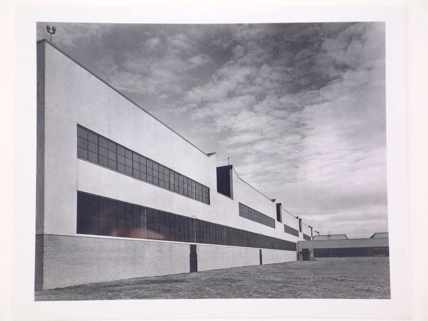 View of the lateral [?] façade of the Assembly Building and the principal [?] façade of the Engineering Building, Curtiss-Wright Corporation Airplane division Assembly Plant, Columbus, Ohio