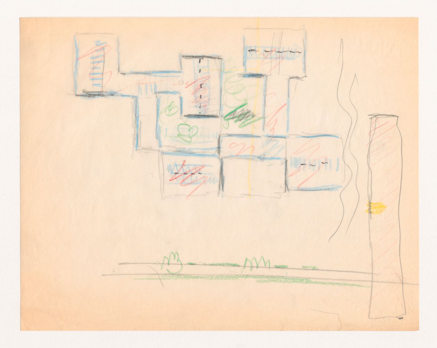 Drawing in graphite with coloured pencil on translucent paper