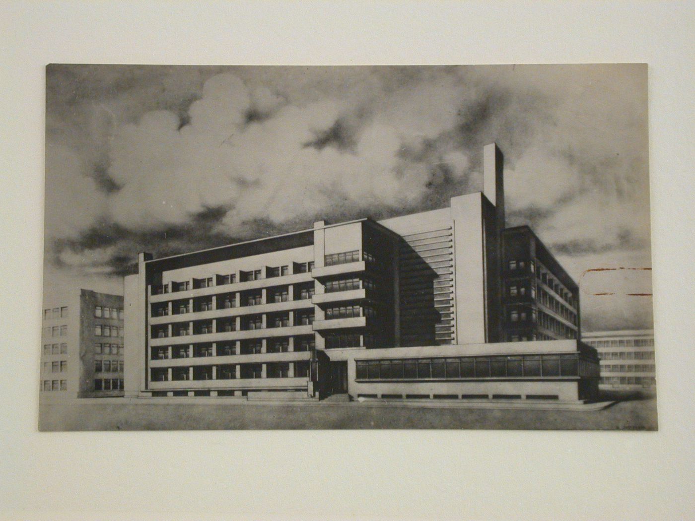 View of perspective drawing of the Wilhelminahuis, a multi-story residential building for women, The Hague, the Netherlands