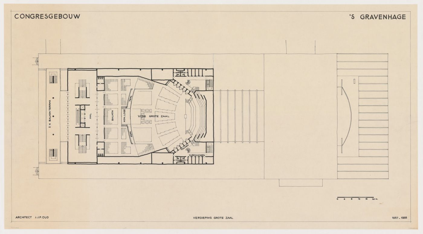 First floor plan showing the main auditorium for the Congress Hall Complex, The Hague, Netherlands