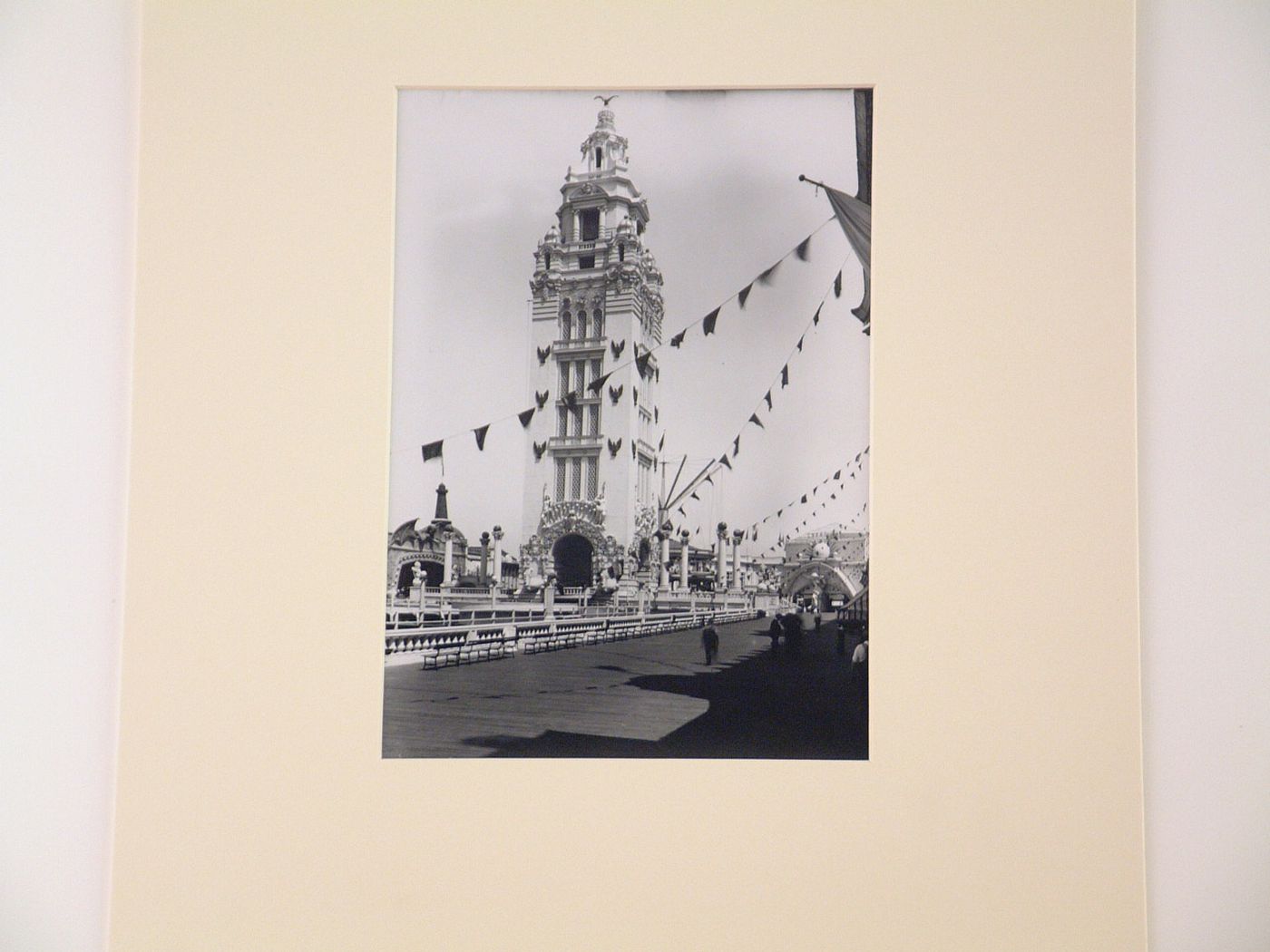 inscribed - "Dreamland" Tower by Day from/Tea house (in ink, in unknown hand, on print, verso, UC); 445 (81768) (in pencil, in unknown hand, on print, verso, C) stamped - 7 4959 (in ink, on print, verso, UC)