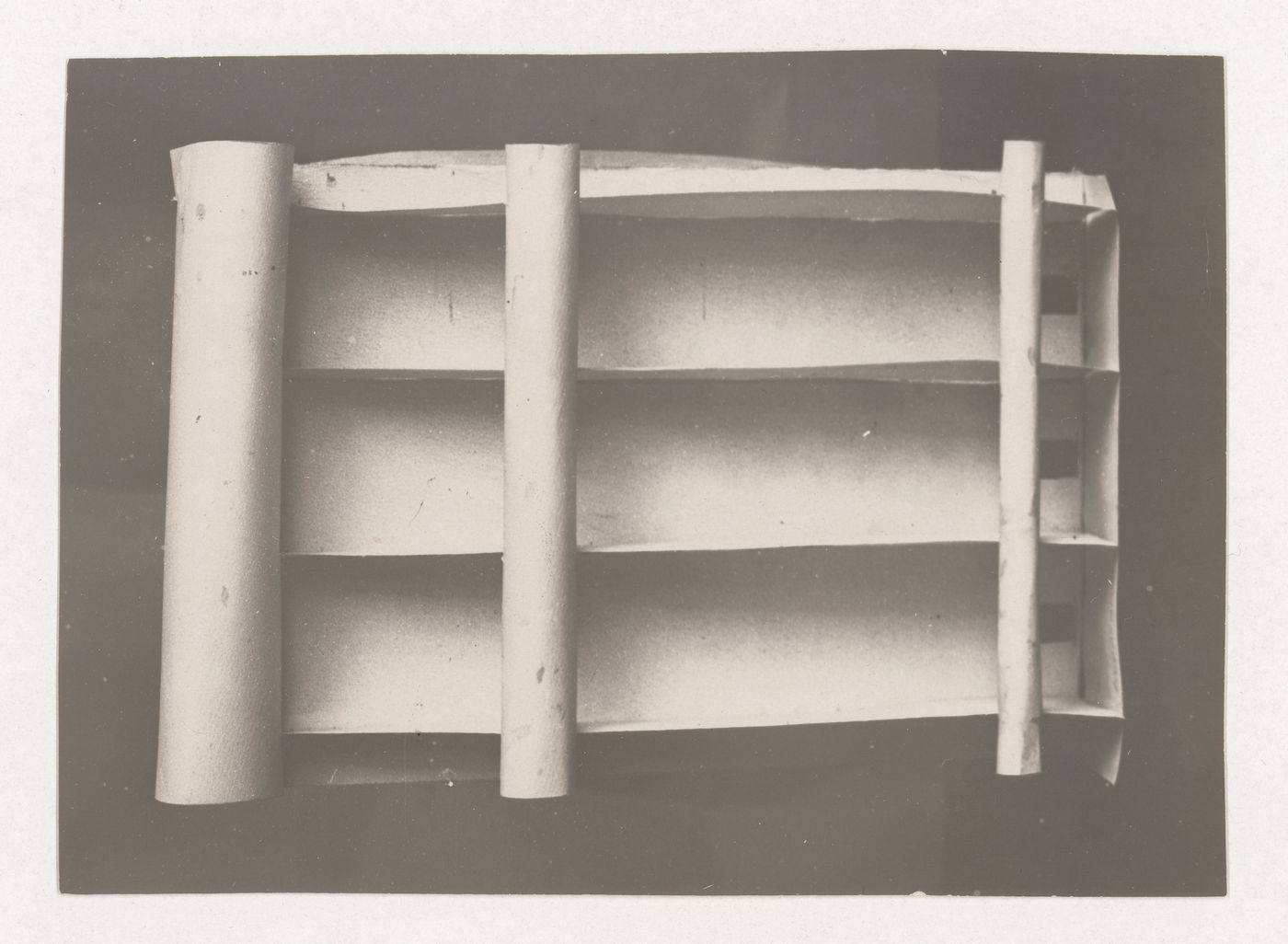 Photograph of a student model on the topic "Construction of Frontal Surface Based on Vertical, Horizontal and Inclined Combination of Two or More Rhythmical Rows" for the "Space" course at the Vkhutemas, Moscow