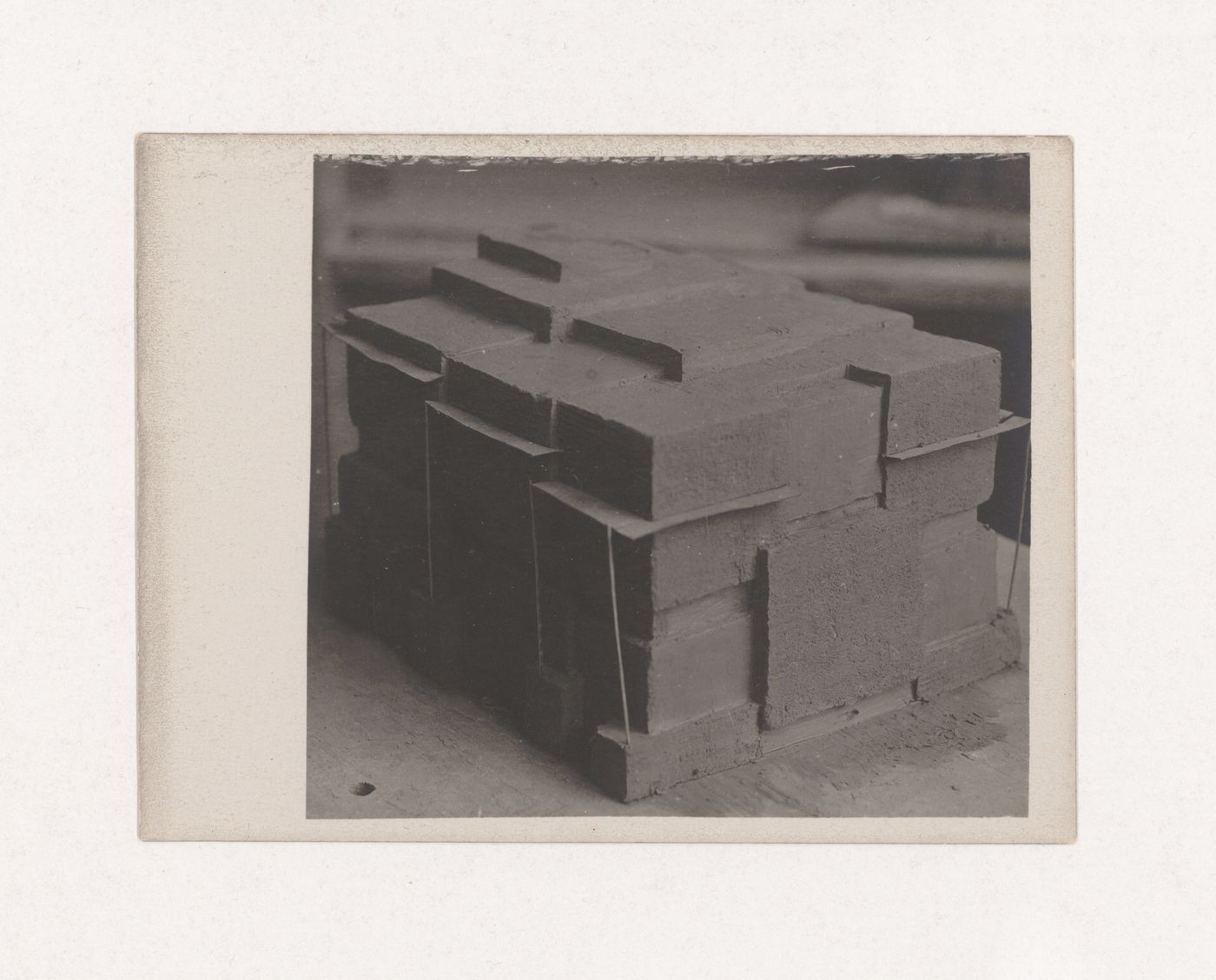 Photograph of a student model on the topic "Finding the Form of Blunt Massive Volume (Parallelepiped, Cylinder, Complex Configuration)" for the "Space" course at the Vkhutemas (Higher State Artistic Technical Studios), Moscow