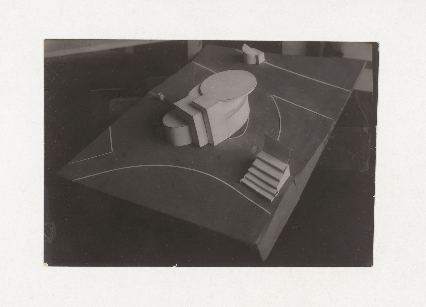 Photographs of student model and drawings on the topic "Exercise on Finding Mass and Weight. Exhibition Pavilion" for the "Space" course at the Vkhutein (Moscow Higher Technical Institute), Moscow