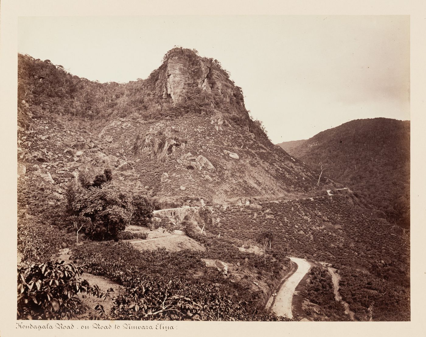 View of Kondgala Road with mountains in the background, near Nuwara Eliya, Ceylon (now Sri Lanka)