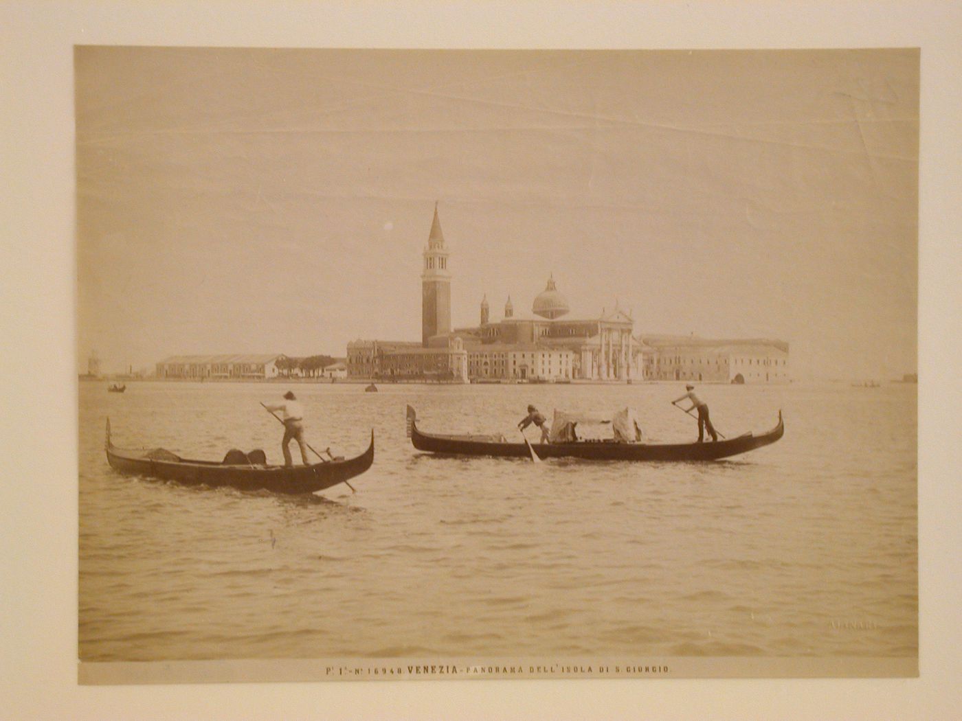 Inscribed; stamped - PöIò 1öAò - Nöoò.á16948.áVENEZIA - PANORAMADELL'ISOLA DI S.áGIORGIO (printed on sheet, below composition, C0; 22 (writtenin pencil, in unknown hand, verso, UL)öòö òST ALINARI (blind stamp, recto, LR)