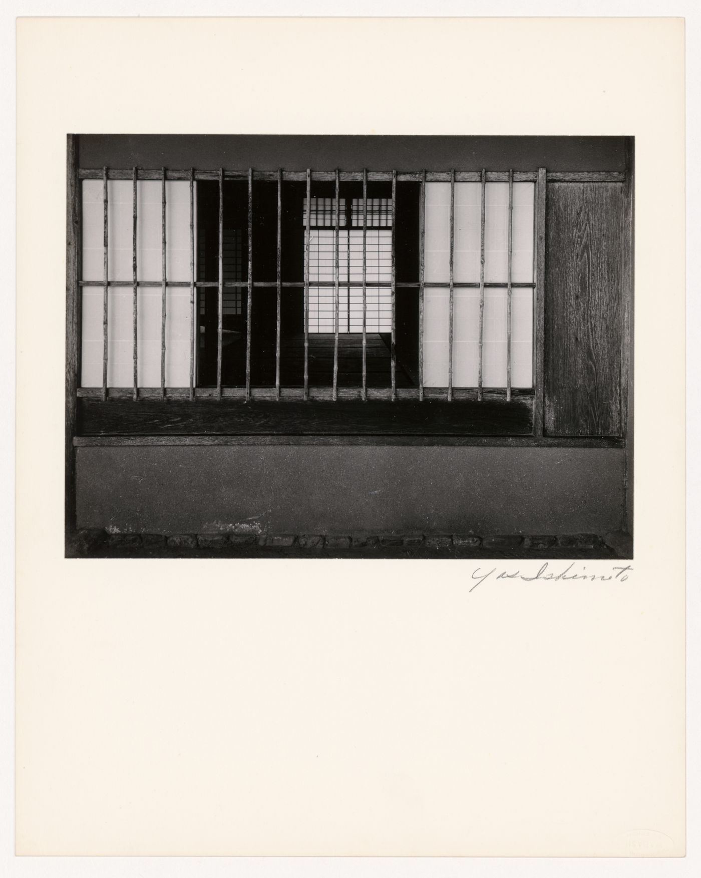 signed - by the photographer, in graphite, on the secondary support, c.r.: "Yas Ishimoto" [below the l.r. corner of the image] stamped - blind embossed, on the secondary support, l.r.: "FAVOR - RUHL CO./ WABASH / KID FINISH"; [in an oval; upside-down] numbered - by an unknown hand, in graphite, on the secondary support, verso, l.r.: "145"