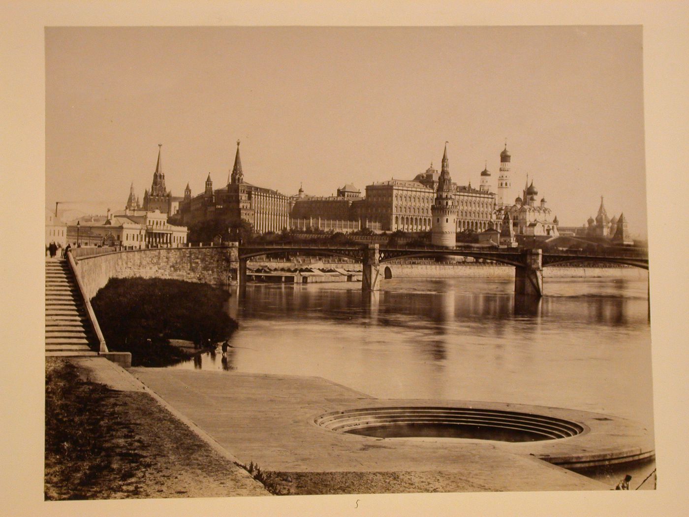 View of the Kremlin from across the Moskva River showing the Borovitski Tower and Vodovzvodnaya Tower (Water-pumping Tower) in the foreground, Moscow