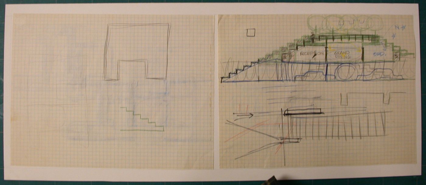 Coloured pencil, graphite and ink on sheets of graph paper affixed on pasteboard