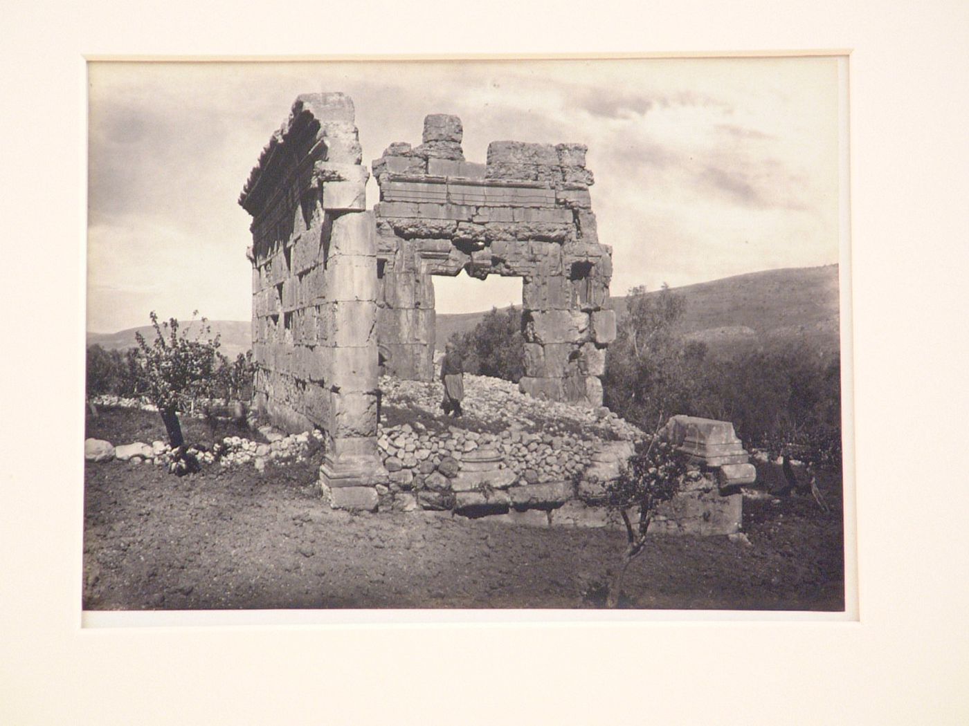inscribed - F.M. Good/Printed by Frith/135-(in pencil, onmount, vc, verso) 605/ Ruins of a Phoenician Temple at Hibbaryeh, nearBanias./Probably near this spot Jeroboam built one of his idolatrous templesfor the worship of the Golden Calf. I Kings xii.20. (printed on mount, LC,verb)