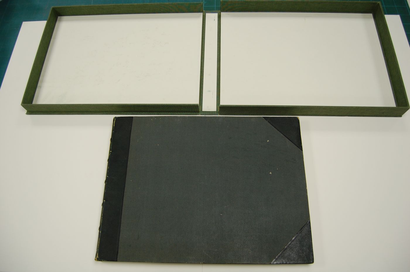 - Contemporary binding consists of green leather-covered spine and corners, green cloth-covered boards with gilt lettering and marbled endpapers