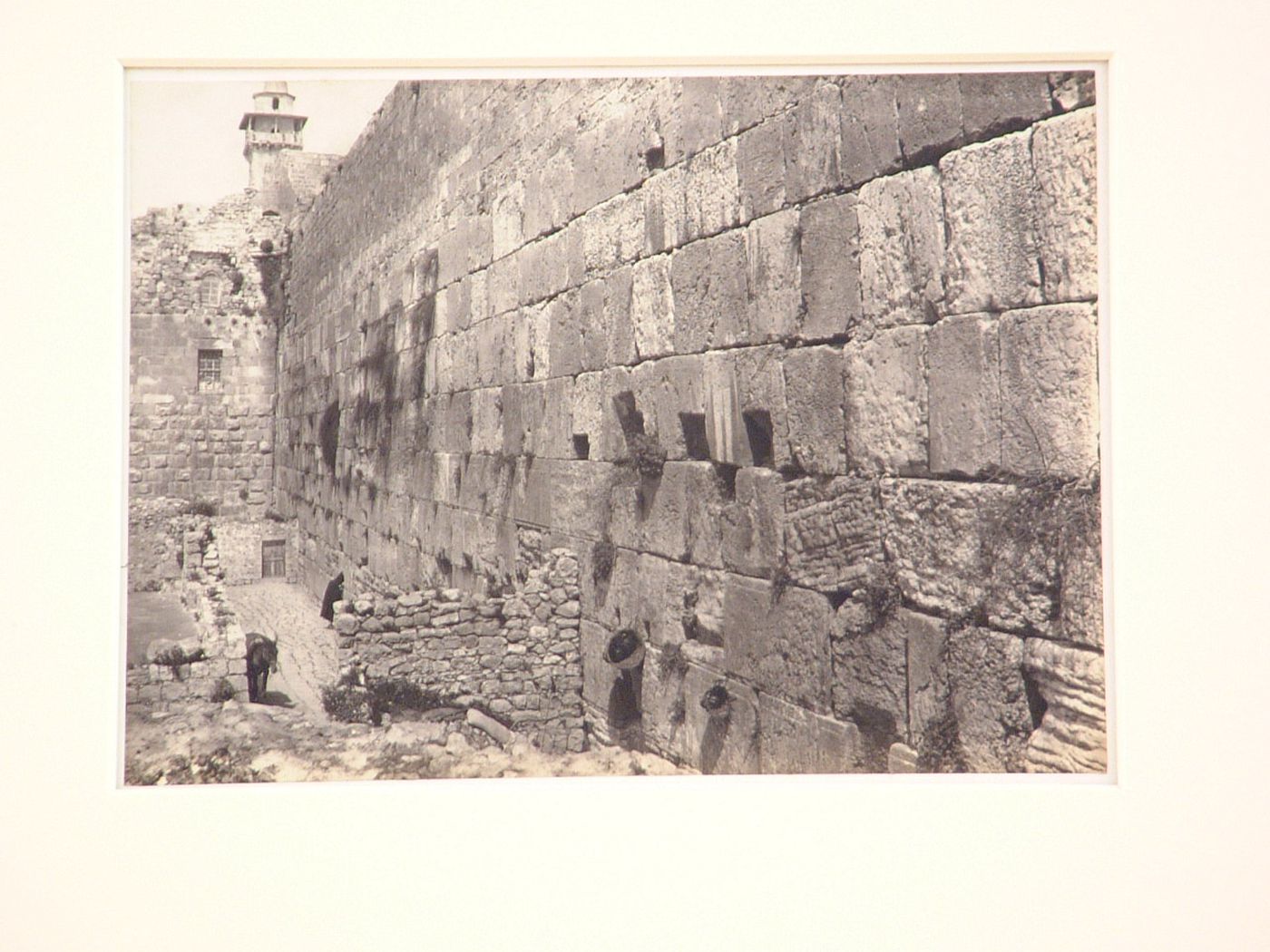 inscribed - F.M. Good/1860's/200- (in pencil, in modern hand, on mount, upper left, verso) 579/THE WALL OF WAILING, JERUSALEM./HERE THE JEWS ARE PERMITTED TO APPROACH THE PRECINCTS OF THE ANCIENT TEMPLE, AND BEWAIL THEIR OUTCAST CONDITION AND THE FATE OF THE HOLY CITY/"O GOD, THE HEATHEN ARE COME INTO THINE INHERITANCE THY HOLY TEMPLE HAVE THEY DEFILED." Psalm lxxix.1. (printed on mount, lower centre, recto).