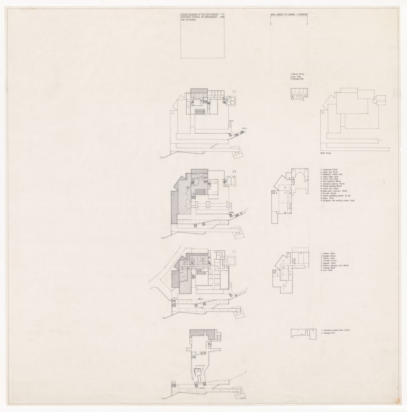 Plans with guide for internal re-arrangement and extension for Ampliação do Casino e Restaurante Winkler [Winkler Casino and restaurant extension], Salzburg, Austria