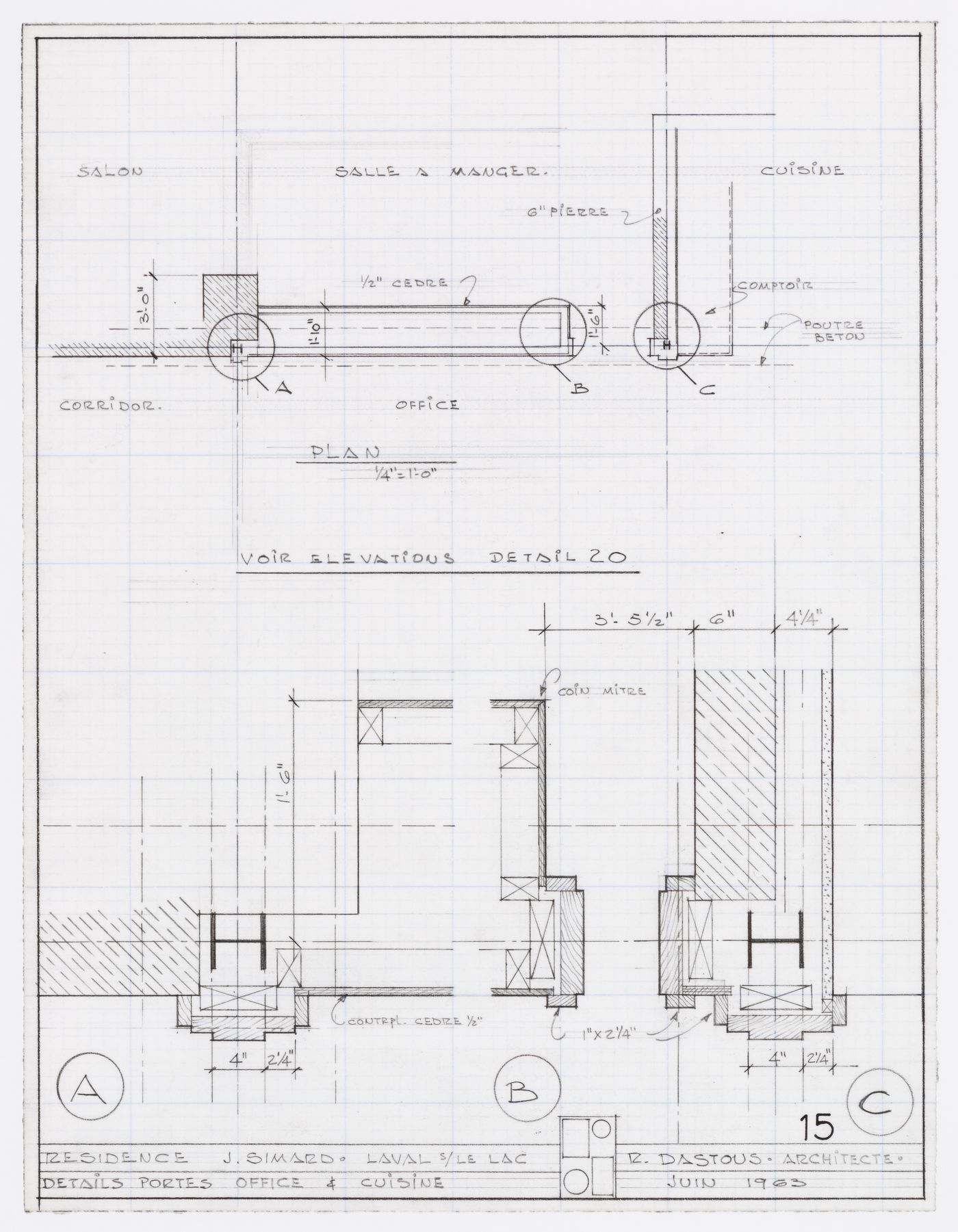 Plan et détails de portes pour Résidence Jean Simard, Laval-sur-le-Lac, Québec