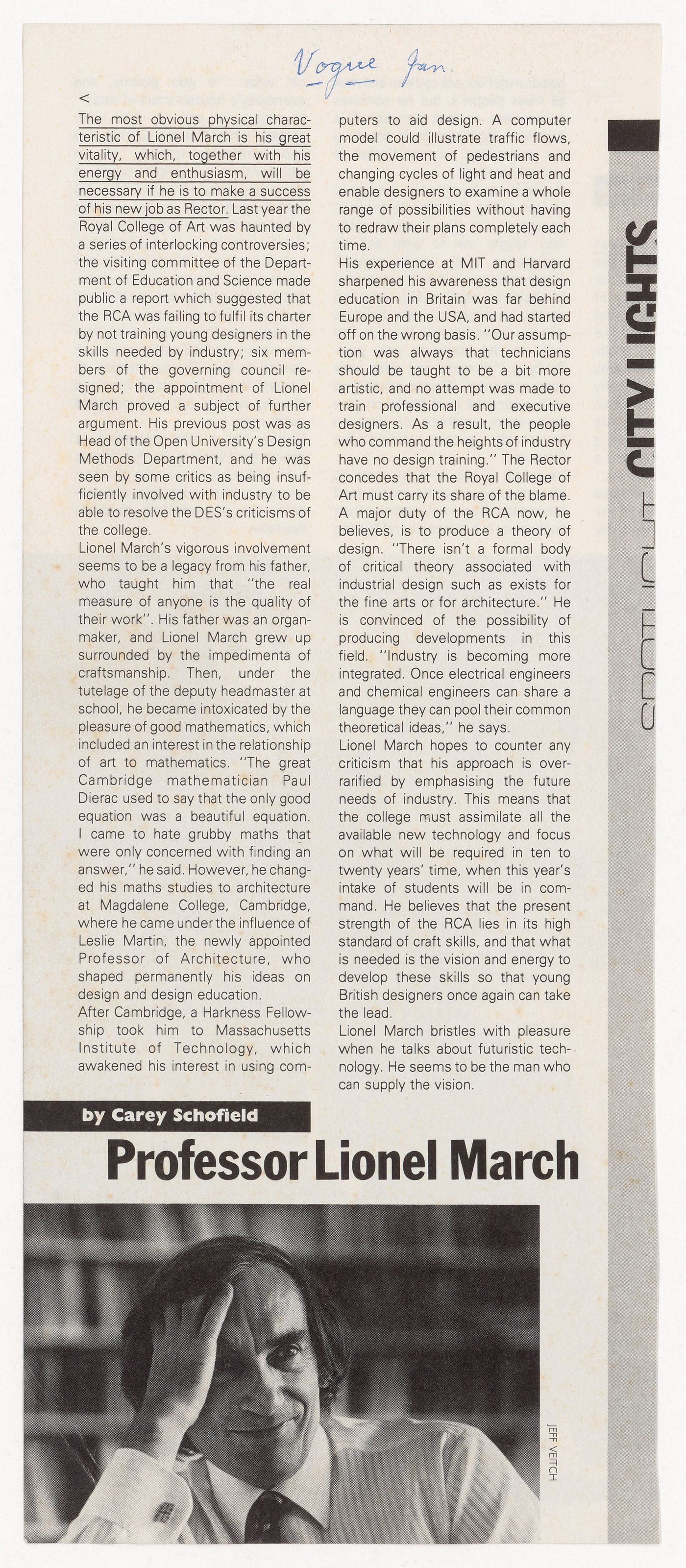 Profile of Lionel March in Vogue Magazine