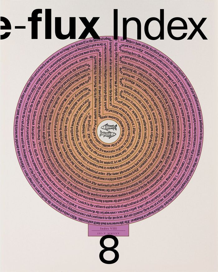 This eighth issue of the Index brings together contributions from 142 artists, philosophers, designers, architects, theorists, poets, activists, and more, organized into 11 thematic digressions: Don’ts, Othercare, Chance Operations, The World of Interiors, Bone Alphabets, The One Who Waits, The Day Is the Barricade, Sentimental Educations, Marking Territory, [gesticulating], Sedimentology.