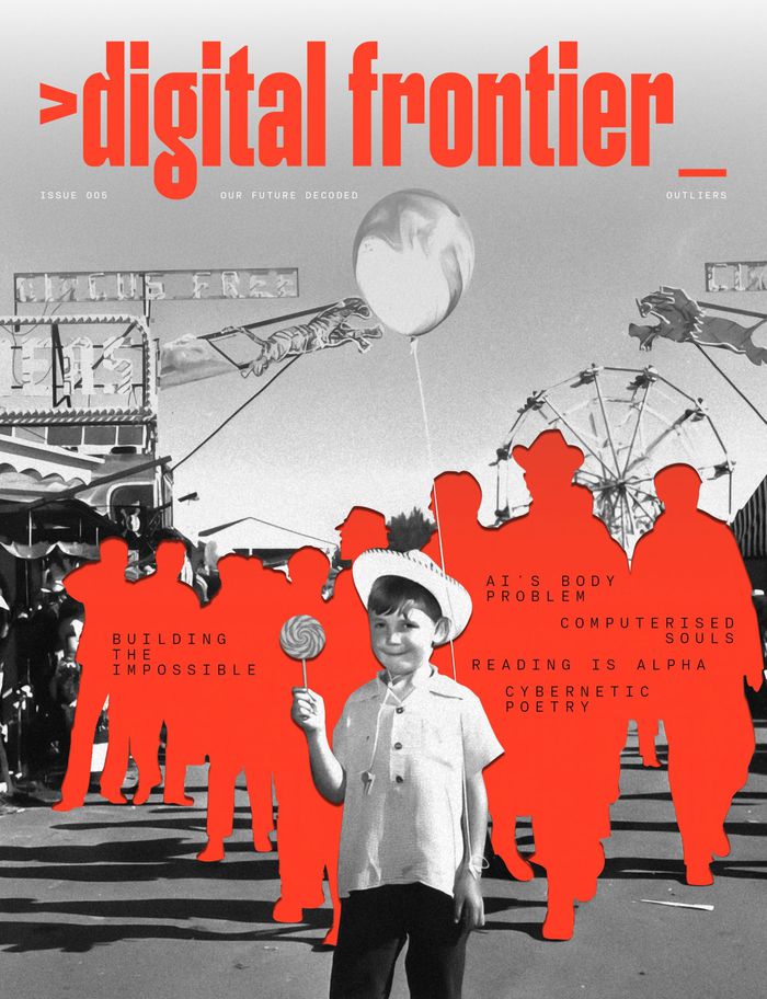 In issue 005 of Digital Frontier, meet the Outlier people, projects and ideas reimaging what our future will look like. The founders of New Computer are attempting to code a computerised soul; Kenyan builders leapfrog ahead using DIYed infrastructure; and multi-hyphenate creatives Danielle Baskin and Damjanski are turning random thoughts into engaging experiences. We also explore a DeepMind researcher’s suggestion that AI needs a body to attain superintelligence and dive into the weird world of virtual fantasy via Berlin’s Cybrothel. We hope the youthful optimism of everyone featured is contagious.