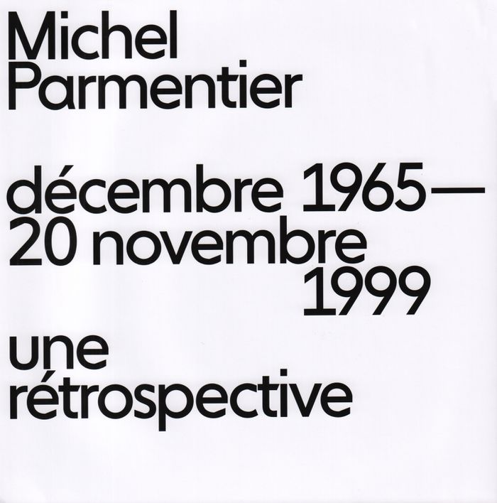 Michel Parmentier : décembre 1965 - 20 novembre 1999, une rétrospective