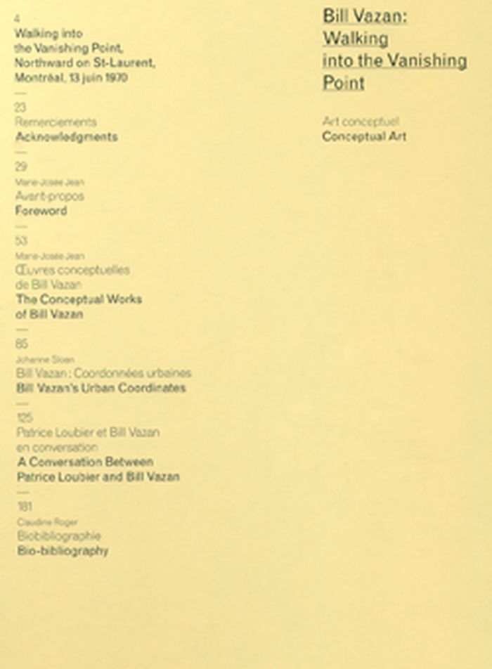 La pratique de Bill Vazan est généralement associée au land art et aux montages photographiques. Pourtant, dès la fin des années 1960, cet artiste élabore un langage conceptuel singulier et réalise des œuvres emblématiques. Cette première monographie consacrée à son travail conceptuel espère rendre compte d’une œuvre profonde, inventive et rigoureuse, laquelle n’avait pas encore fait l’objet d’une telle attention. Bill Vazan's practice is generally associated with land art and photographic montages. Yet in the late 1960s, the artist began developing a singular conceptual language, creating a number of emblematic works. This first monograph devoted to his Conceptual work attempts to pay tribute to an inventive, rigorous, and profound body of work that has not garnered special attention until now.