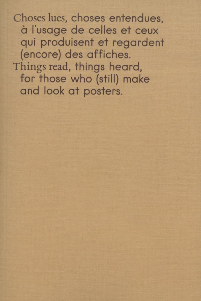 Ce petit livre a pour point de départ la question « Qu'est-ce qu'une bonne affiche ? » et s'en détourne au fur et à mesure qu'il se déploie, confronté à la complexité de cette interrogation, qui porte à la fois sur la vérité, la justesse, la fonctionnalité ou encore le bon goût d'une production graphique. Le texte résulte d'un travail d'entretiens menés au Signe par Léo Carbonnet et Léonore Conte durant une résidence de deux mois ; il peut être lu autant comme une longue phrase, un dialogue ou une liste plus silencieuse de principes. En octobre 2025, il a été enrichi d'une documentation visuelle extraite du fonds d'affiches du Signe, sélectionnée et disposée sous forme d'inserts par les étudiantes du DSAA design graphique et médiation du lycée Charles-de-Gaulle de Chaumont à l'occasion d'un workshop.