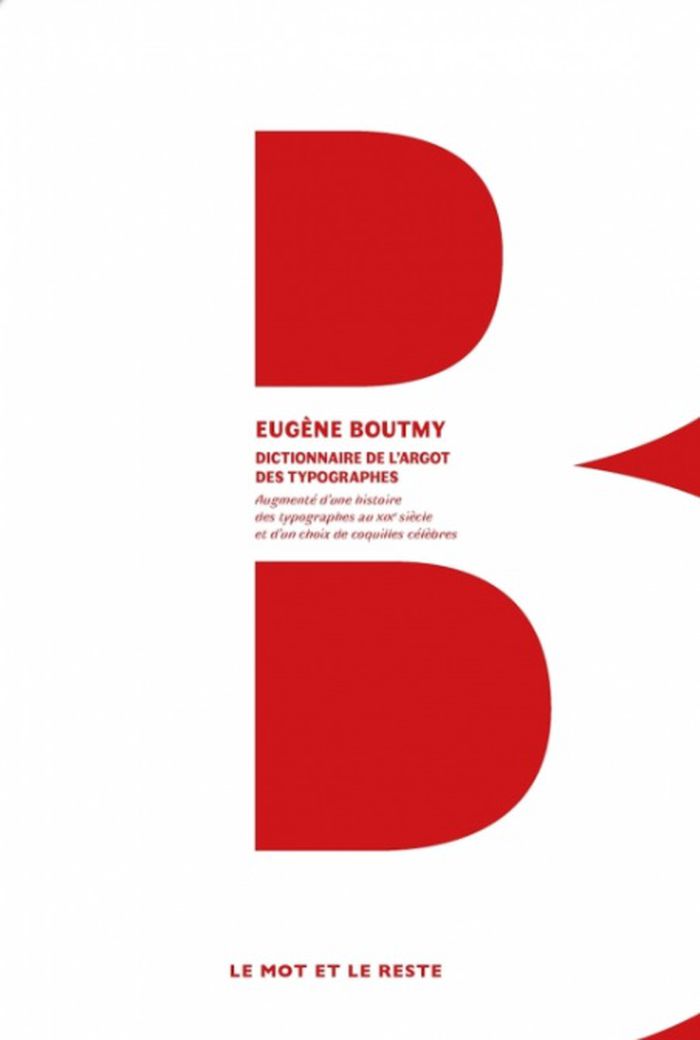 Eugène Boutmy était typographe à une époque où cette activité nécessitait d’être ouvrier et savant, sachant manier le plomb récupéré dans la casse et dans le même temps manipuler les tournures de la langue, ainsi que faire respirer le texte sur la page. Ce labeur a généré une langue verte, un argot qui permettait « d’entrer en imprimerie ». Certes ce lexique peut nous sembler lointain à l’heure où des logiciels donnent à croire que la maîtrise de la mise en page est réduite à peu de chose. Paradoxalement, la complexité de ce langage nous ramène à une autre complexité concomitante : celle de la mise en page, qui pose toujours les mêmes problèmes soulevés au travers de ce dictionnaire. Faire une belle page n’est pas si simple sans quelques règles. Mais surtout, cet ouvrage souligne que le labeur des typographes, dur et contraignant, ne les a pas empêchés d’avoir une conscience sociale qui se développe encore chez les ouvriers du livre.