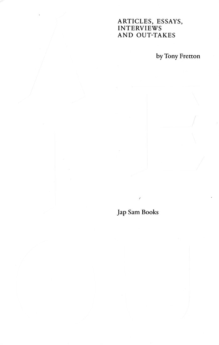 A E I OU: articles, essays, interviews and out-takes by Tony Fretton