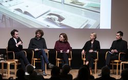 Yves Moreau, Claudia Shmidt, Sofia von Ellrichshausen et Mauricio Pezo conversent avec Francesco Garutti