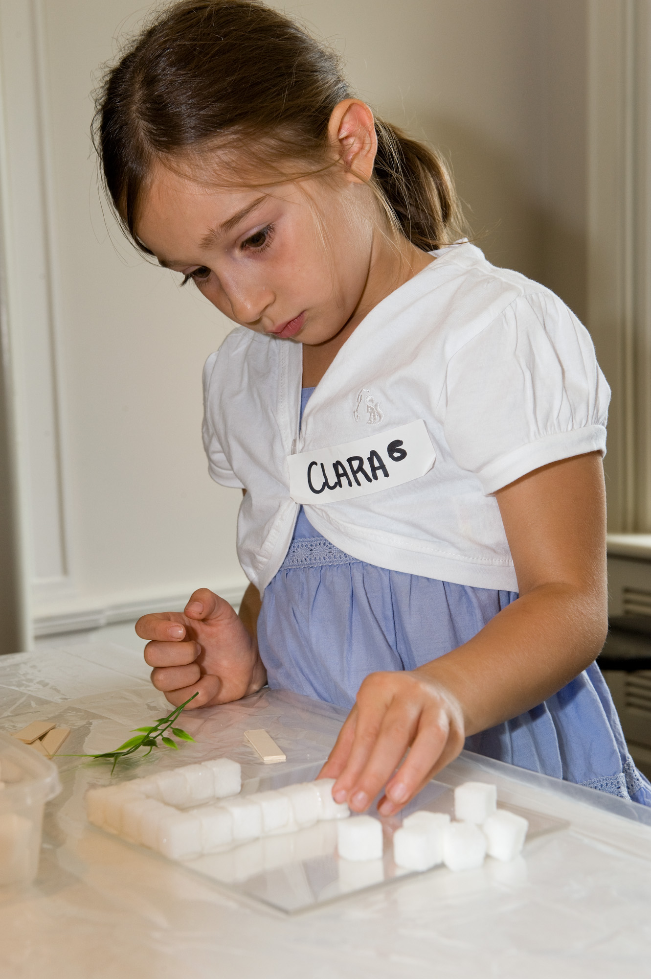 À la fin de l’activité, les maisons de sucre sont rassemblées sur une même table pour créer un îlot urbain : on apprend ensemble à cohabiter dans la ville, à s’imaginer des rapports de voisinage et des jardins dans les interstices…